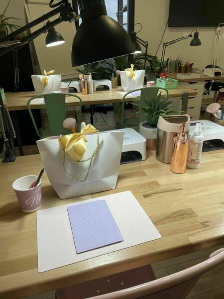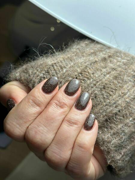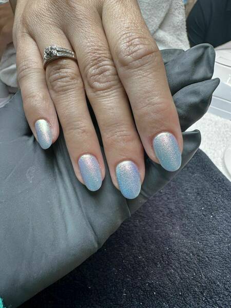Incrustation paillettes + différentes formes des ongles + rallongement chanson